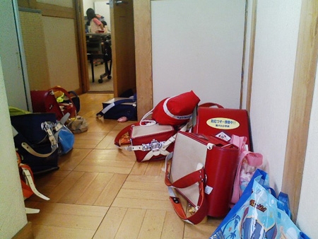 みつはのそろばんの迎えに行くと教室の入り口に置かれたたくさんのかばん!