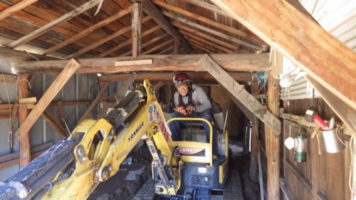 狭いスペースにおいては、小型重機が大活躍!倉庫・パネル間に入っていき、家財道具・製品を傷つけないよう、レバー操作・走行・旋回など、すべての動作において全神経を全集中!もちろん、安全第一で。時にはスコップに持ち替えたり、重機から降りて住民さんとお話しをしながら、1つ1つのニーズに対応していきました。