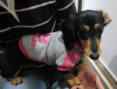 洋服まで着て!?着せられて!?しかもアディダス!