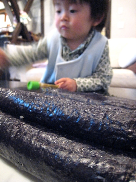 既に恵方巻を狙っている映心。生まれて初の恵方巻です。