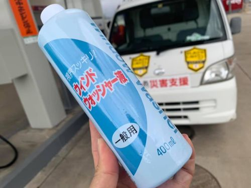 復興者とボランティアにはガソリン&軽油が10円引/?の嬉しい特典を頂けます。また粗品としてウォッシャー液まで。