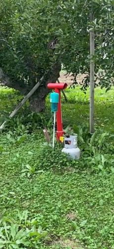そんな中、今日1番苦戦したのは木の本数でもなく、泥でも天候でも無く、鳥獣害対策としてすぐ近くに設置されていた爆音機、、、