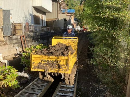 重機のバケットが届かないところはスコップで土砂を掻き出してくれました。