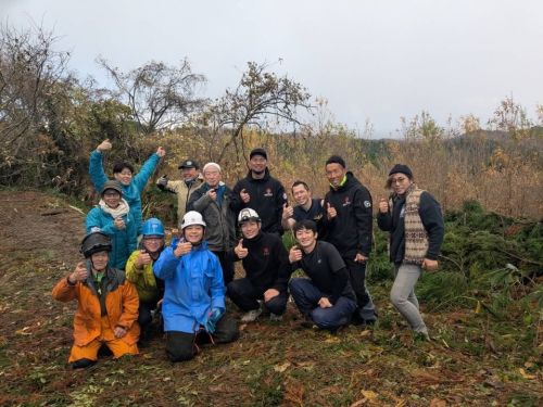 笑顔チームは昨日引き続き伐倒と玉切りを実施。消防士さんチームも別の段で伐倒を実施しました。