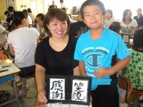 休憩を挟んで最後に二人一筆で「感謝」と「笑顔」のはがきを作成しました。林さんの作品を見て真似ながらもそれぞれに個性を出した作品がぞくぞく。